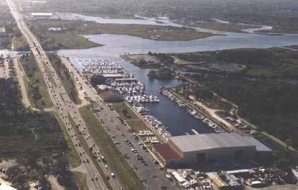 | If I don't take pictures of a place, it fades from memory... I got in here late and left early, plus it was rainy and cold. I broke out my space heaters, cracked open a bottle of wine and had a long chat with my sweetie on the cell phone! Ain't technology great?? Here's a map from google maps of Beach Marine It is the basin just to the North and East of 212. And their website Some pictures from their website: Aerial view looking East, you can see the Atlantic on the horizon: And my pathetic contribution: |